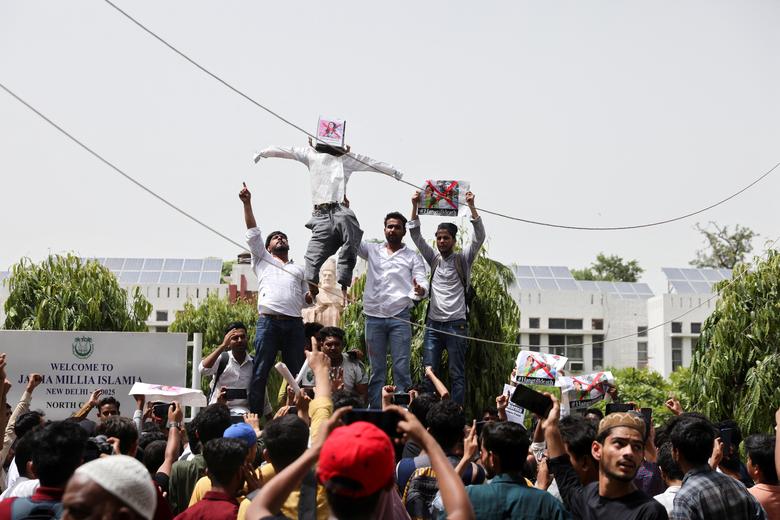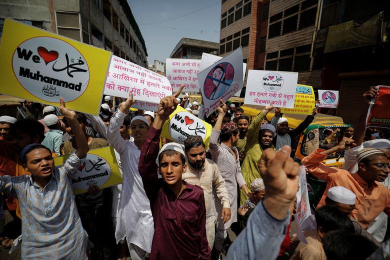 Policia u përball me turmat që goditnin me gurë në të paktën dy qytete indiane të premten, ndërsa turmat protestuan në shumë zona të vendit mbi komentet përçmuese për Profetin Muhamed të bëra nga dy ish-anëtarë të partisë Nacionaliste Hindu. Zëdhënësja Bharatiya Janata dhe kryeministri Narendra Modi dhanë deklarata kontraverse për fenë islame dhe profetin Muhamed./Reuters/