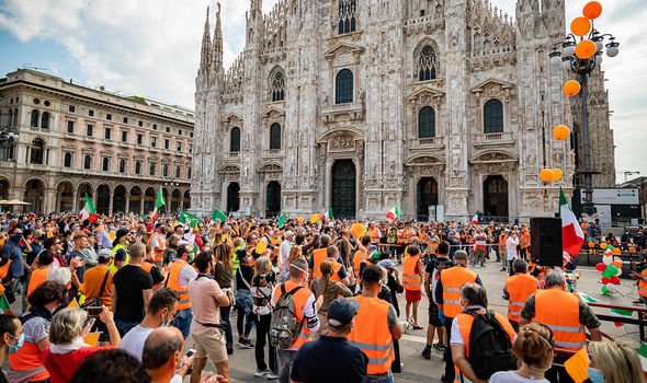 Në Italinë fqinje kanë shpërthyer një sërë protestash që pretendojnë se pandemia e Covid-19 është një farsë dhe se virusi nuk është i rrezikshëm. Ato po udhëhiqen nga një lëvizje që po e quajnë veten jelek-portokallinjtë, e cila po bën thirrje madje që njerëzit të mos vaksinohen.
