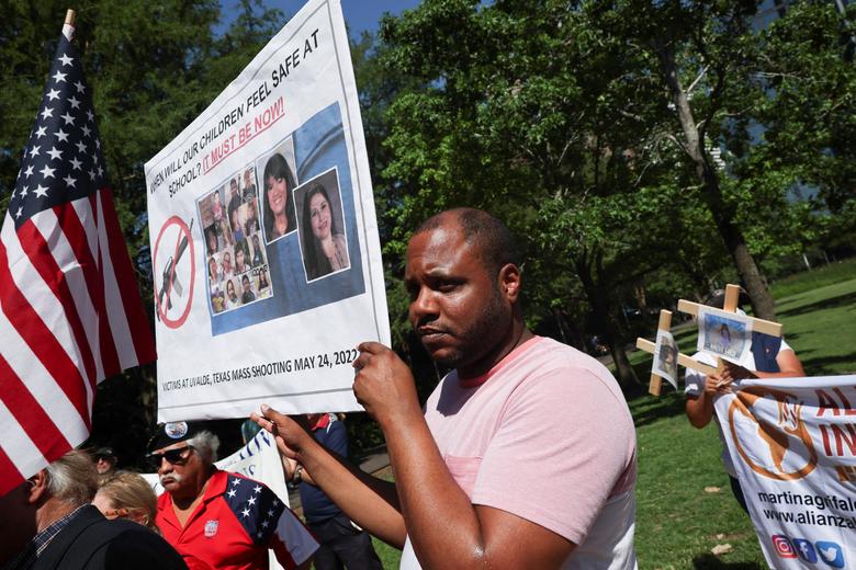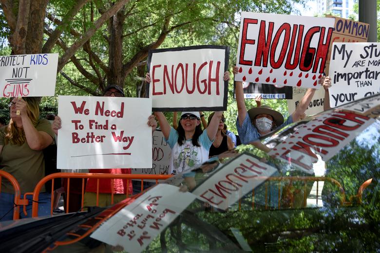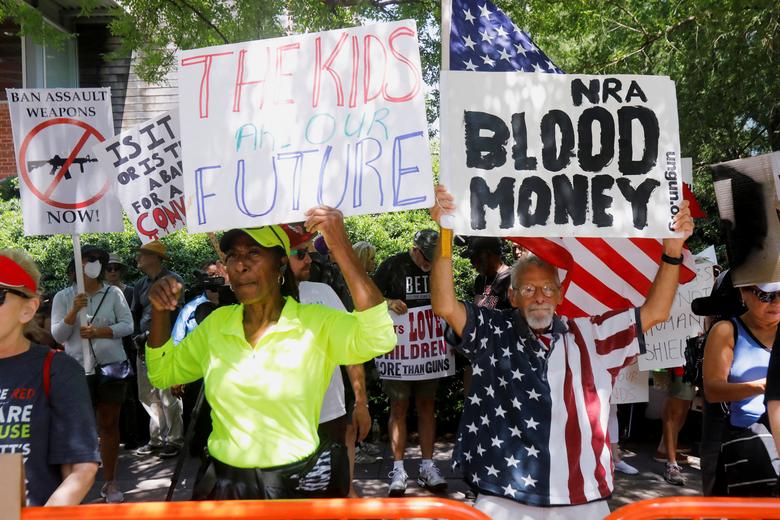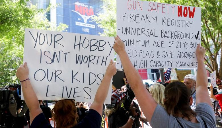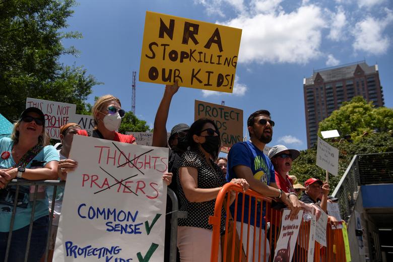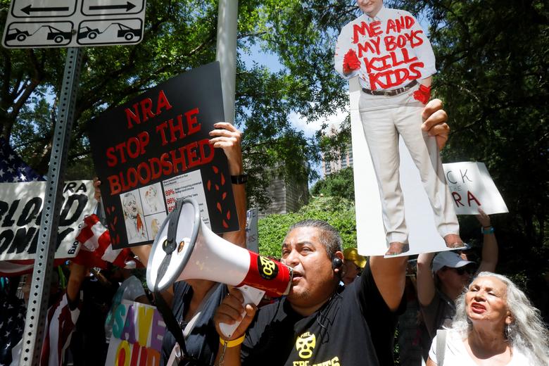 Një grup protestuesish të zemëruar për vrasjen me armë zjarri të nxënësve të shkollës fillore të Teksasit u mblodhën jashtë konventës së Shoqatës Kombëtare të armëve. Më 25 maj një 18-vjecar vrau 19 fëmijë dhe dy të rritur në një shkollë fillore.