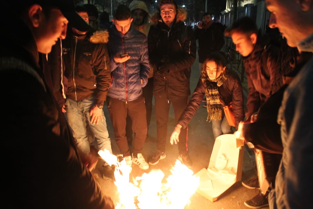 Një grup i vogël studentësh vijon të qëndrojë ende para Ministrisë së Arsimit, në pritje të realizimit të kërkesave nga qeveria për uljen e tarifave studentore.
