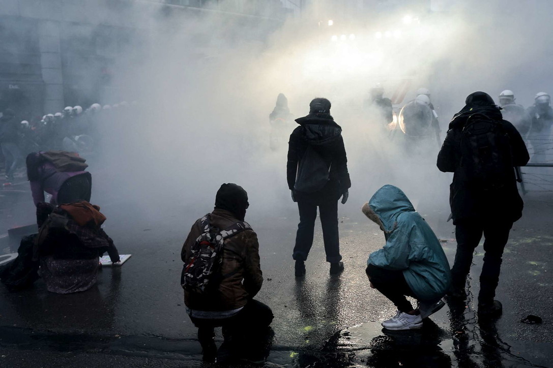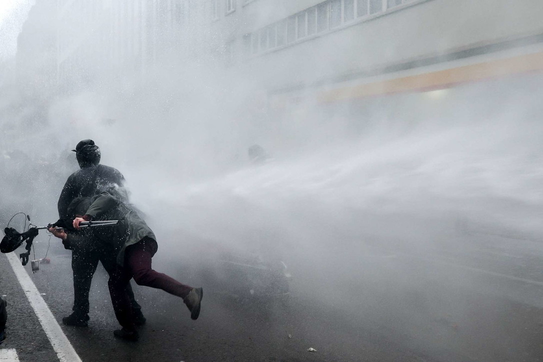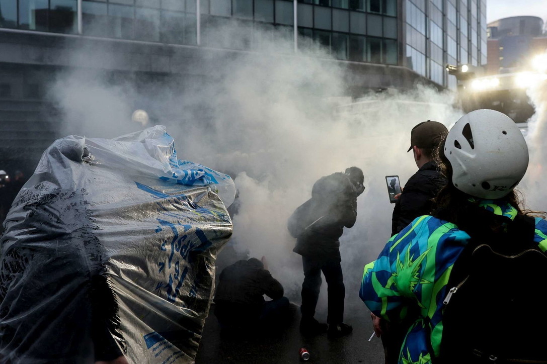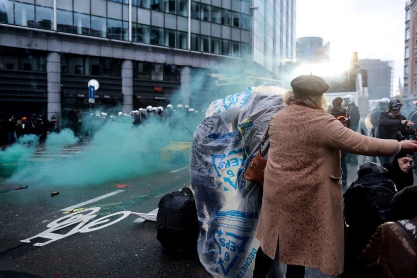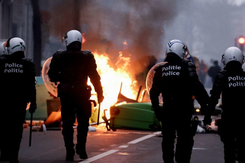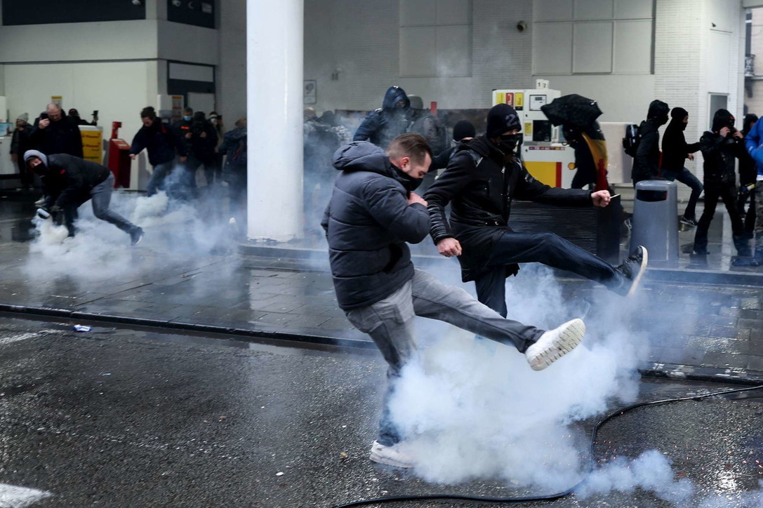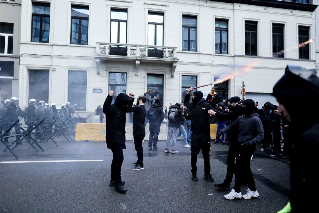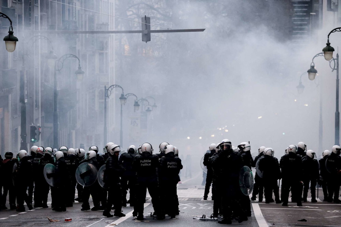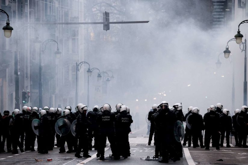 Protestuesit hodhën kanaçe dhe fishekzjarrë ndaj oficerëve dhe policia u përgjigj me hidrantë zjarri dhe gaz lotsjellës. Mediat belge raportojnë e janë arrestuar me dhjetëra protestues të dhunshëm.