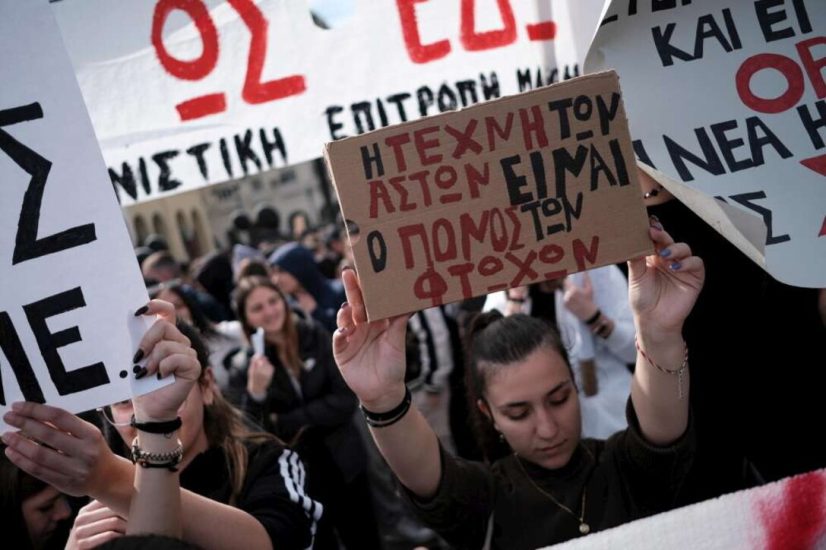 Në Larisa, megjithatë, pranë vendit ku ndodhi aksidenti me tren, studentët që mbanin tullumbace të zeza brohoritën sloganin “Mos përfitoni nga jetët tona!”.