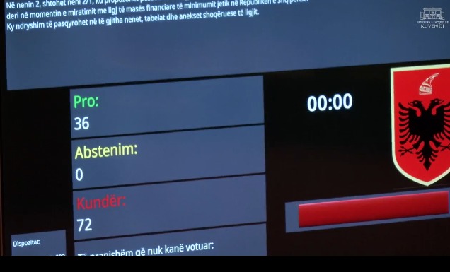 Nga Gazeta ‘Si’- Mazhoranca ka rrëzuar me 72 vota kundër dy amendamentet e propozuara nga kryetari i PD-së, Sali Berisha për vendosjen e minimumit jetik.