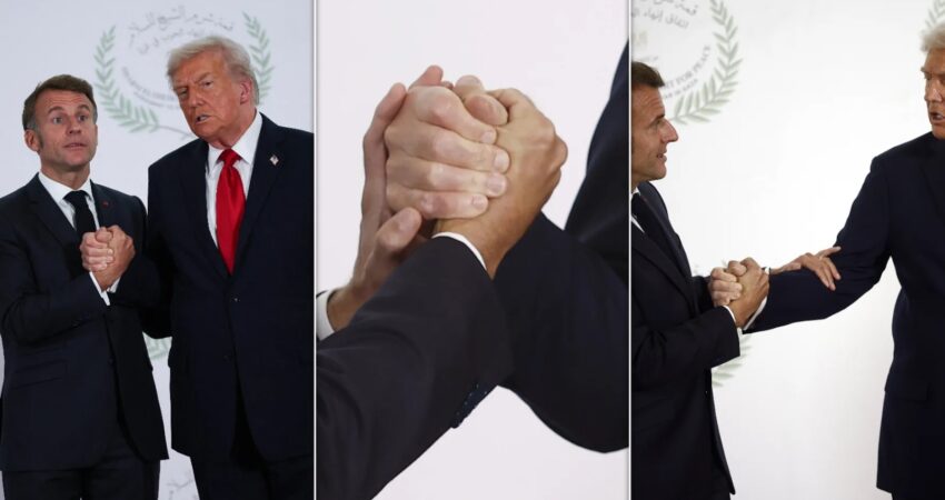 Ngjarja ndodhi të hënën(13 tetor) gjatë nënshkrimit të fazës së parë të marrëveshjes së armëpushimit mes Izraelit dhe Hamasit, ku Trump dhe Macron patën një shtrëngim duarsh të pazakontë.