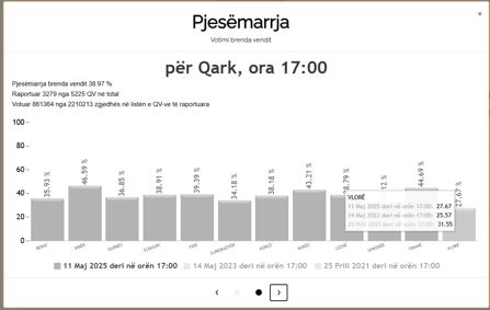 KQZ tregon se tre zgjedhjet e fundit, 2021, 2023 dhe tani për qindja nuk ndryshon shumë është aty -aty, në rendin, hapësirën mes 25-29 për qind..