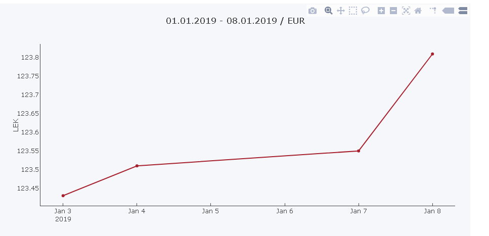 Sipas kursit zyrtar të Bankës së Shqipërisë, një euro është këmbyer të martën me 123, 81 lekë duke u rritur me 0, 26 pikë nga një ditë më parë dhe me 0,78 pikë nga 27 dhjetori i vitit që lamë pas.
