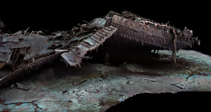 Skanimi i parë digjital me përmasa të plota i Titanikut, i cili shtrihet 3.800 m poshtë në Atlantik, është krijuar duke dhuruar një pamje shumë pranë së vërtetës. Ai siguron një pamje unike 3D të të gjithë anijes, duke bërë të mundur që ajo të shihet sikur nuk është nën ujë.