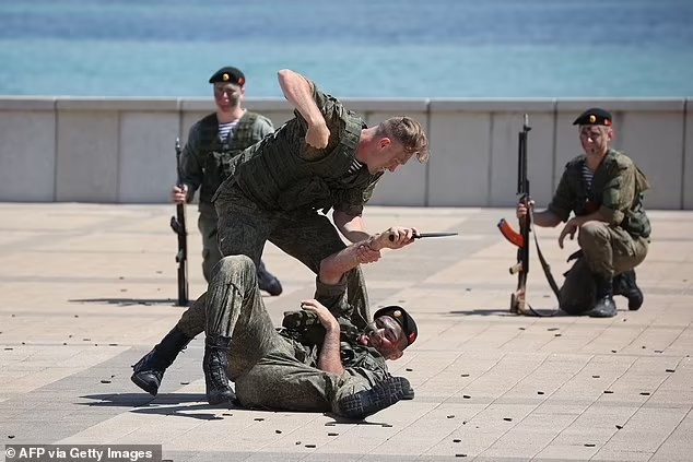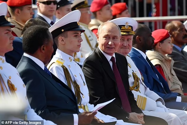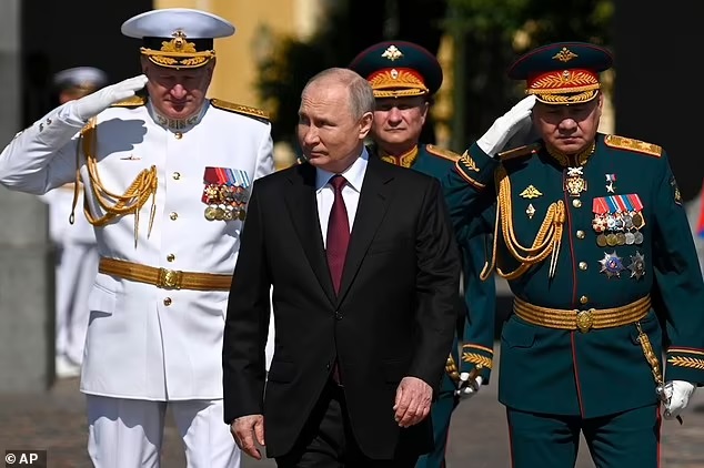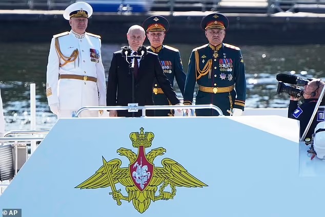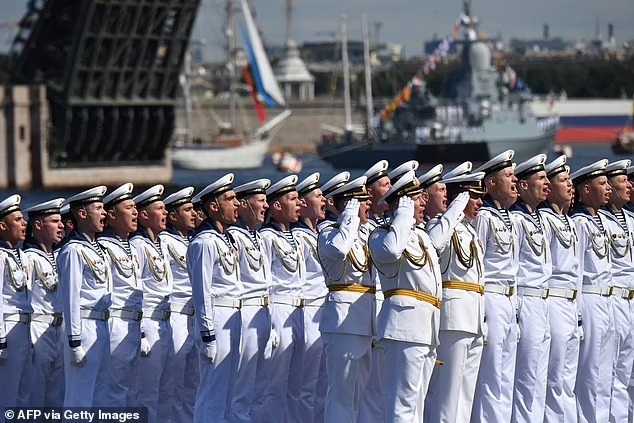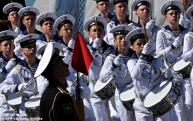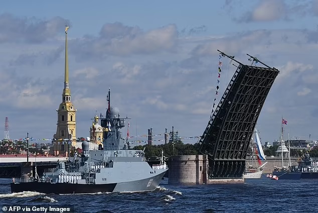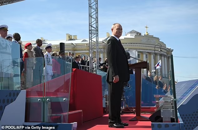 Rreth 45 anije, nëndetëse bërthamore dhe mjete të tjera lundruese morën pjesë në festimet me rastin e Ditës së Marinës së Rusisë, një shfaqje tradicionale e fuqisë ushtarake që zhvillohet në Gjirin e Finlandës dhe në lumin Neva në Shën Petersburg. Rreth 3000 ushtarakë të marinës morën pjesë gjithashtu në një paradë në tokë. Shfaqja vjen pikërisht pas tre sulmeve me dronë mbi Moskë të dielën në mëngjes. Putin, i shoqëruar nga Ministri i Mbrojtjes Sergei Shoigu dhe Admirali Nikolai Yevmenov, kreu i Marinës, inspektoi disa nga anijet nga një varkë lëshimi në Neva përpara se të mbante një fjalim, ku theksoi se do të shtojë edhe më tej flotën detare me 30 anije të reja.