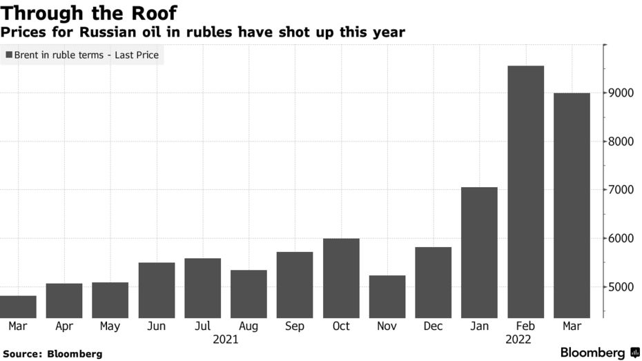 Me gjithë vështirësitë për konsumatorët në vend dhe pengesën financiare që i është vënë qeverisë nga jashtë, Bloomberg pret që Rusia të fitojë afro 321 miliardë dollarë nga eksportet e energjisë këtë vit, një rritje prej më shumë se një të tretën nga viti 2021. Është gjithashtu në rrugën e duhur për një suficit rekord të llogarisë korrente që Instituti i Financave Ndërkombëtare thotë se mund të arrijë deri në 240 miliardë dollarë.