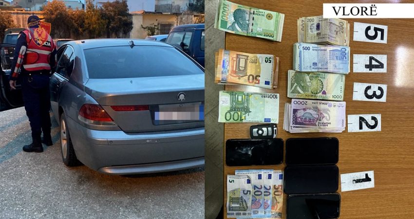Policia sekuestroi në cilësinë e provës materiale 2500 Euro të dyshuara të falsifikuara, 120 400 lekë, 1 automjet tip “BMW” dhe 4 celularë.