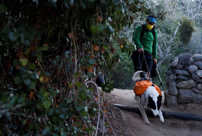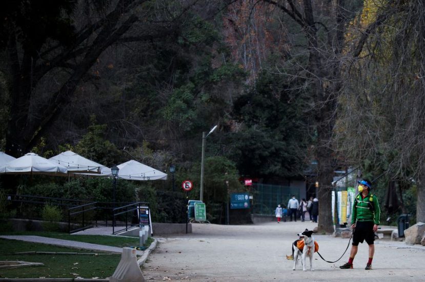 Qeni, i cili bën shëtitje të rregullta në parkun metropolitan të Santiagos me pronarin e tij, është bërë i famshëm duke veshur një pelerinë jeshile dhe duke pastruar vendin.