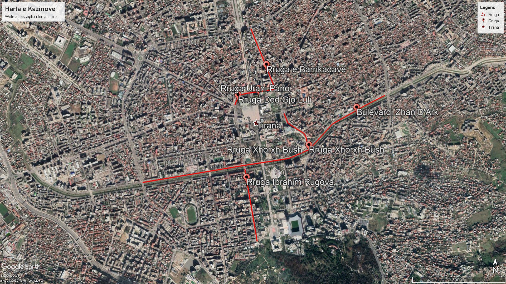 Në total bëhet fjalë për gjashtë rrugë. Ato janë Rruga e Barrikadave, Rruga Urani Pano, Rruga Dedë Gjon Luli, Rruga Ibrahim Rugova, Bulevardi Zhan D’Ark dhe Rruga Xhorxh W.Bush.