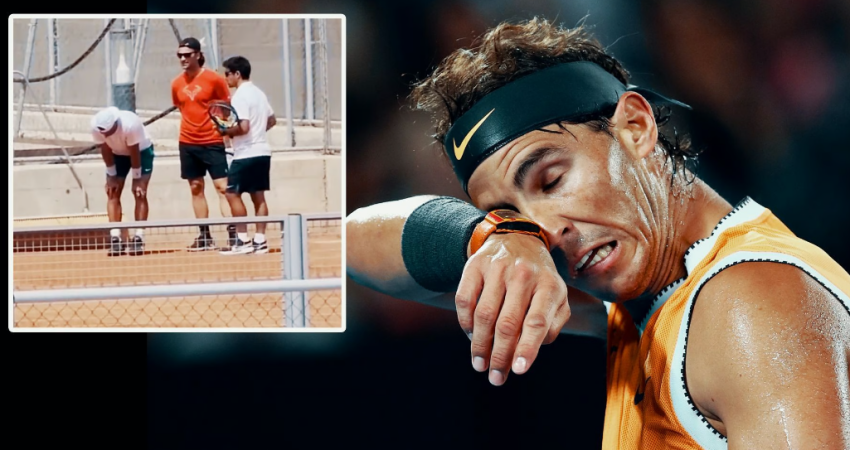 I lodhur, me një shikim shqetësues, në gjunjë, i vuajtur, i rrethuar nga Moya dhe stafi i tij. Një video shfaq një Rafael Nadal larg formës dhe larg Roland Garrosit. Në fakt, nuk dihet me saktësi kur është bërë kjo video, nga njerëzit pranë tenistit të njohur nuk ka pasur reagime, por bëhet fjalë për dyshimin e radhës për praninë e 14 herë fituesit të Roland Garros në turneun e tij të preferuar.