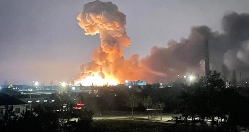 Pamjet e publikuara në rrjetet sociale shfaqën një tym të madh mbi qytetin Pskov dhe një flakë të madhe, po ashtu.