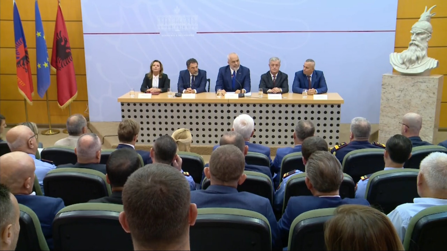 “Në vitin 2012 janë vrarë 125 njerëz dhe krahasimisht gjatë këtyre viteve shifra e vrasjeve është përgjysmuar. Nëse vjet kishim 38 vrasje, sivjet kishim vetëm 30. Ky ishte viti me numrin më të ulët të vrasjeve në 30 vjet, ky është fakt, – tha ai. – Kjo nuk do të thotë se vrasjet nuk janë problem, madje janë problem serioz, sidomos kur bëhet fjalë për ngrënien e kokave të llumit të shoqërisë. Po të shohësh tabelën e të dhënave, Shqipëria është ngjitur drejt mesatares së të dhënave Europiane dhe disa nga vendet e BE kanë më shumë vrasje, ndërkohë që disa nga vendet e rajonit kanë më pak se ne. Kur morëm ne detyrën, Shqipëria nuk dukej fare, sepse 125 vrasje në vit janë jashtë çdo lloj krahasimi me kuadrin Europian. Por Gushti që na solli dhe këtu ku jemi sot, ishte një befasi alarmuese. Një situatë e rënduar jo vetëm më vrasjet por dhe me disa shenja të tjera shqetësuese, pavarësisht se krahasimisht me vitet e mëparshme, me gjithë vrasjet e gushtit ky është viti me numrin më të ulët. Por ky gusht dhe çfarë ka ndodhur në këtë gusht, duhet të shërbejë si shuplakë, dhe të na ngrejë në këmbë drejt objektivave më ambiciozë për Policinë e Shtetit. Si është e mundur që Policia e Shtetit akoma sot nuk e ka një përgjigje, për fatin e njërit prej profileve më të larta të krimit të organizuar në Shqipëri. Është e paparanueshme, që për javë të tjerë ekranet shqiptare janë bërë si BB i kronikës së zezë, jo u vra jo nuk u vra ai që ishte i shumëkërkuar nga drejtësia, dhe çfarë nuk dëgjojnë njerëzit, lloj lloj legjendash me luanë, bamirës, oligarkë, shto ujë e shto miell, si një serial absurd për një nga figurat më të zeza të botës së krimit shqiptar dhe Policia e Shtetit nuk di ta thotë, ore u vra apo nuk u vra, kush e ka penguar ta thotë”, tha Rama.