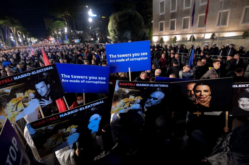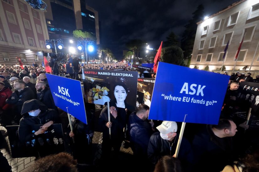 “Ask where EU fonds go”, “Edi stop stealing our Money”, “Karteli narko-elektoral”, thuhej në disa prej pankartave.