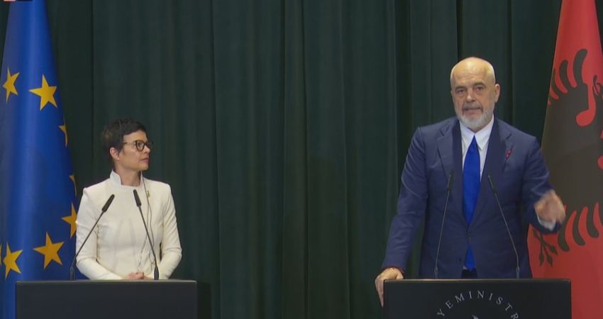 Në një konferencë të përbashkët për shtyp me Komisioneren për Zgjerimin në Bashkimin Evropian, Marta Kos, Rama u shpreh se, Shqipëria është shumë e vendosur që ta përmbushë me sukses objektivin shumë ambicioz të përfundimit të negociatave brenda 2027-ës.