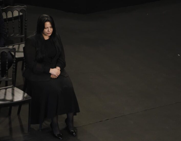 Edhe Xhoana Nano, bashkëshortja e Fatos Nanos, mbajti fjalim në homazhe.