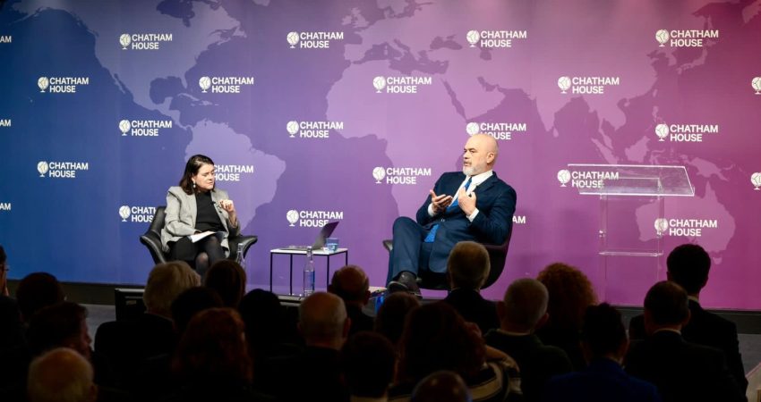 Kryeministri Edi Rama i cili ndodhet në Britaninë e Madhe e nisi këtë të premte me një bashkëbisedim në auditorin e Institutit Mbretëror të Marrëdhënieve Ndërkombëtare, Chatham House.