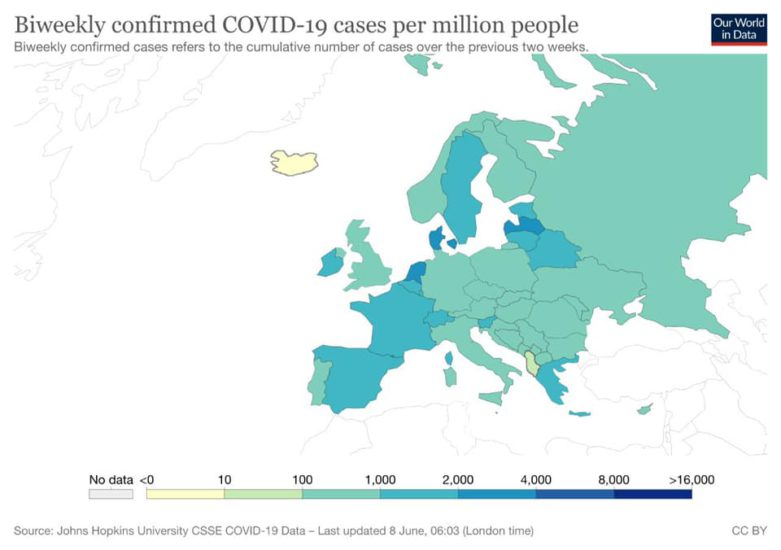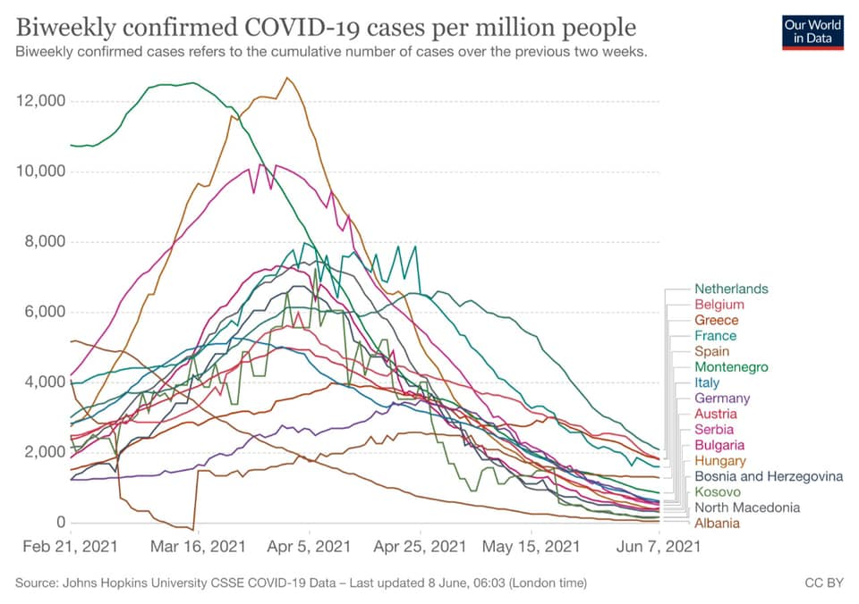 “Në matjen globale të dy javëve të fundit për uljen e rasteve të infektimeve, Shqipëria dhe Islanda, figurojnë si dy vendet me më pak raste infektimesh në kontinentin tonë”, shkruan Rama.