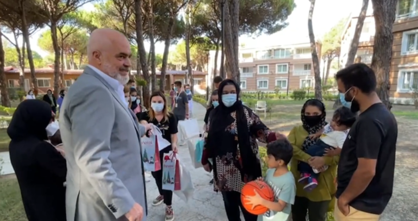 Më pas, kryeministri, i shoqëruar edhe nga ministrja e Shëndetësisë Ogerta Manastirliu, ka shpërndarë dhurata për fëmijët e vegjël afganë.