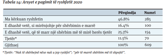 Arsyeja kryesore për dhënien e ryshfetit, sipas të anketuarve, ishte se u ishte kërkuar një gjë e tillë.