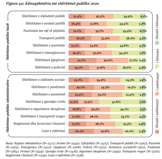 Mesatarisht 56.5% e pjesëmarrësve të këtij studimi raportuan se ishin të pakënaqur ose shumë të pakënaqur me ofrimin e shërbimeve publike bazë.