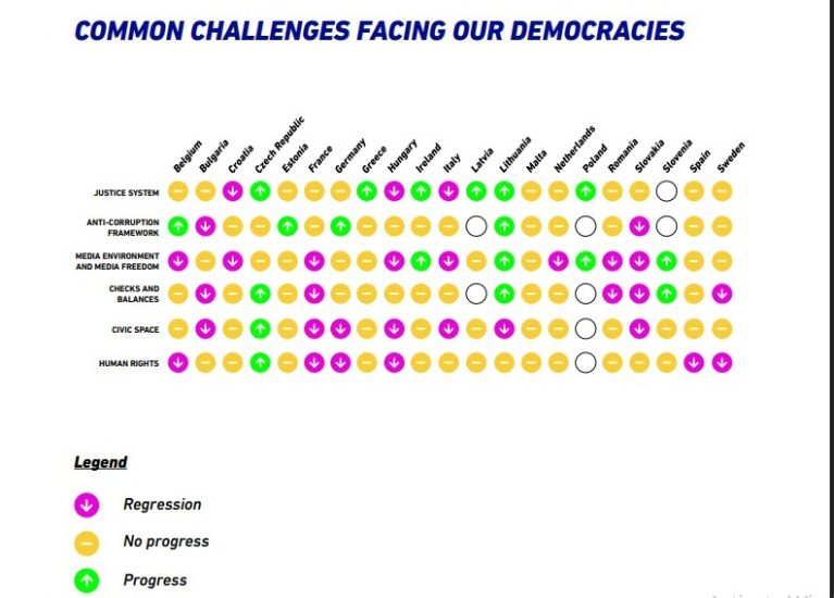 Autorët e raportit paralajmëruan gjithashtu se “demokracitë model”, përfshirë Francën dhe Gjermaninë, në Europën veriperëndimore nuk ishin imune ndaj problemeve. Raporti evidentoi kryesisht rritjen e kufizimeve për lirinë e shprehjes.