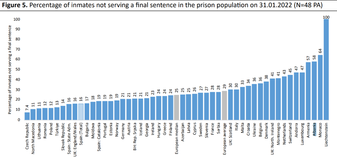 Një tregues interesant ku Shqipëria zë vendin e tretë është se shumica e të burgposurve nuk kryejnë deri në fund dënimin e dhënë, në 58% të rasteve.