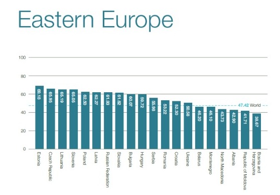 Krahasuar me vendet e rajonit, Shqipëria renditet e parafundit. Në vend të parë është pozicionuar Serbia, në vend të 52-të. Më pas Mali i Zi dhe Maqedonia e Veriut, në vend të 75-të dhe 81-të përkatësisht. Shqipëria në këtë renditje ka lënë pas vetëm Bosnje Hercegovinën, e cila renditet në vend të 96-të.