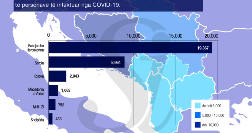 Vendin e parë për më shumë raste aktive në grafike e mban Bosnjë dhe Hercegovina me 19 367 të infektuar, më pas renditet Serbia  në vendin e dytë me 8964 raste, në vendin e tretë Maqedonia e Veriut me 1083 raste dhe në vendin e katërt është  Kosova që ka 2043 raste.