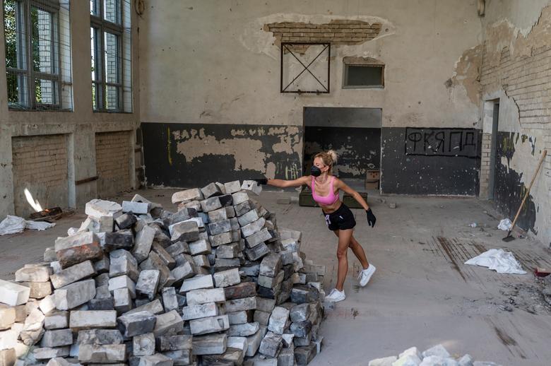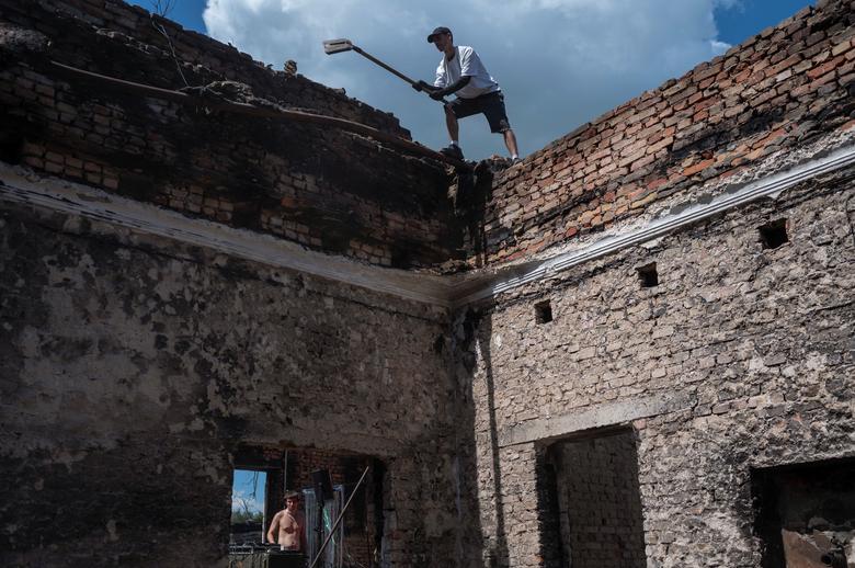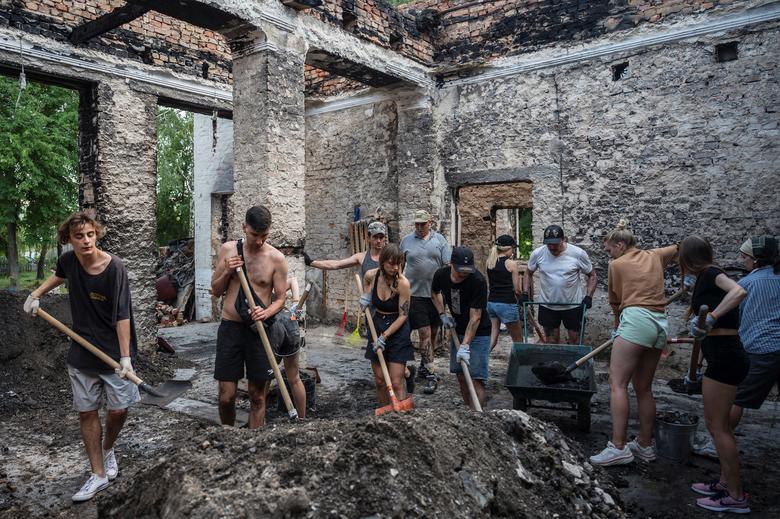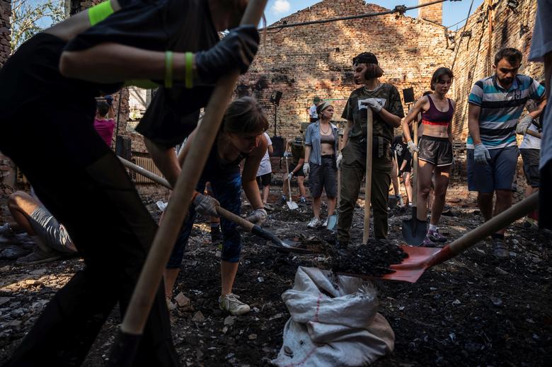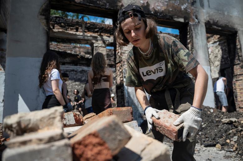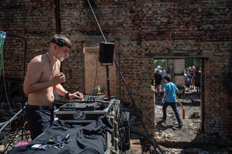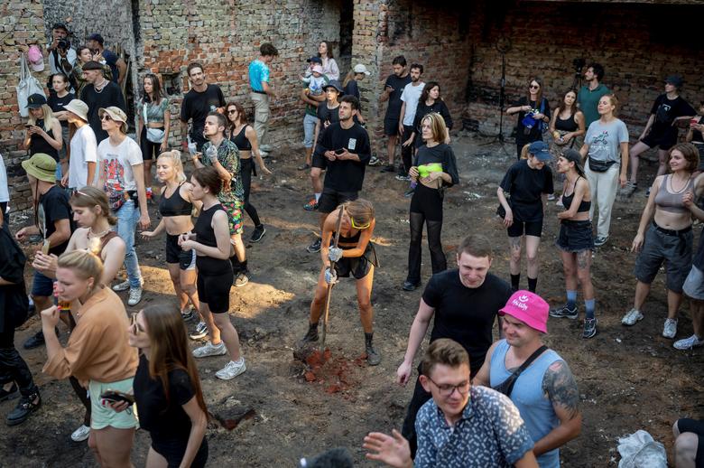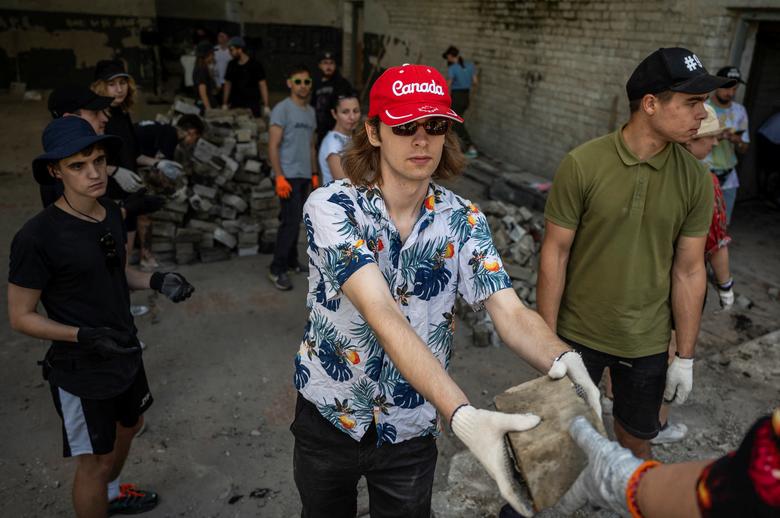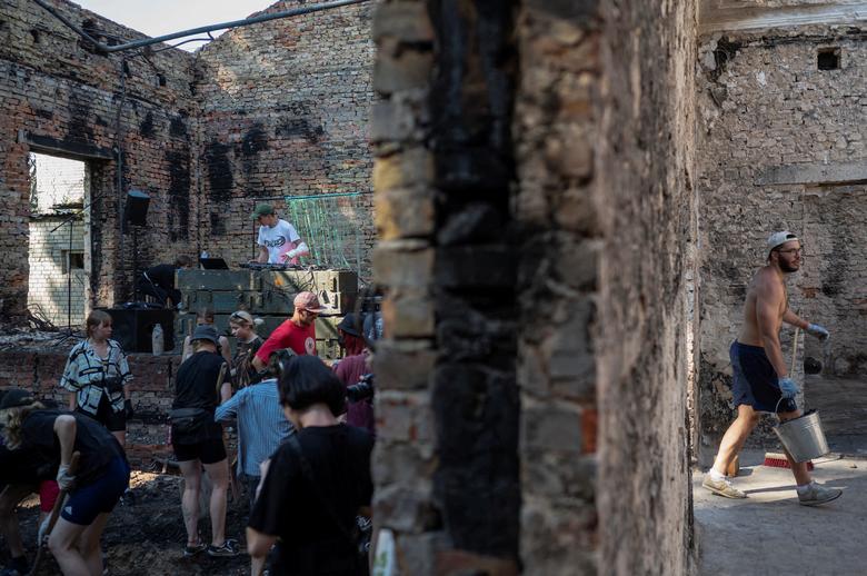 Anëtarët e lëvizjes vullnetare “Repair Together” udhëtuan nëpër vende të Ukrainës, të cilat ishin nën pushtimin rus. Ata ndihmuan banorët vendas të pastrojnë ndërtesat e dëmtuara, nën shoqërimin e muzikës elektronike./Reuters/