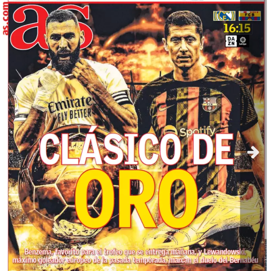 Ndeshja e sotme konsiderohet nga shtypi spanjoll një “El Clasico i artë”, sepse në fushë do jenë dy kandidatët kryesorë për fitimin e trofeut prestigjioz individual. Benzema është favorit, po të kemi parasysh atë që ka bërë sezonin e fundit, ku fitoi Championsin.