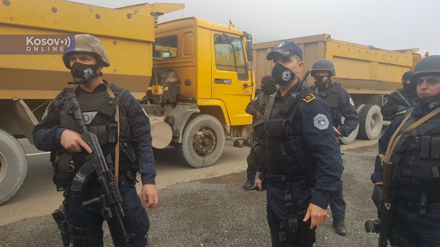 Dhjetëra autoblinda të Policisë së Kosovës janë pozicionuar atje për ta siguruar zbatimin e vendimit më të fundit të Qeverisë së Kosovës.