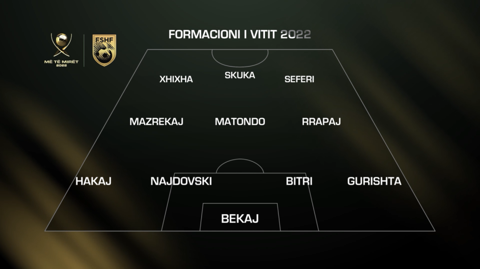 Altin Lala, ish-kapiten i Kombëtares, ishte ai që zbuloi formacionin më të mirë të vitit 2022, që ishte ky: Bekaj, Gurishta, Bitri, Najdovski, Hakaj, Mazrekaj, Matondo, Rrapaj, Xhixha, Seferi dhe Skuka.