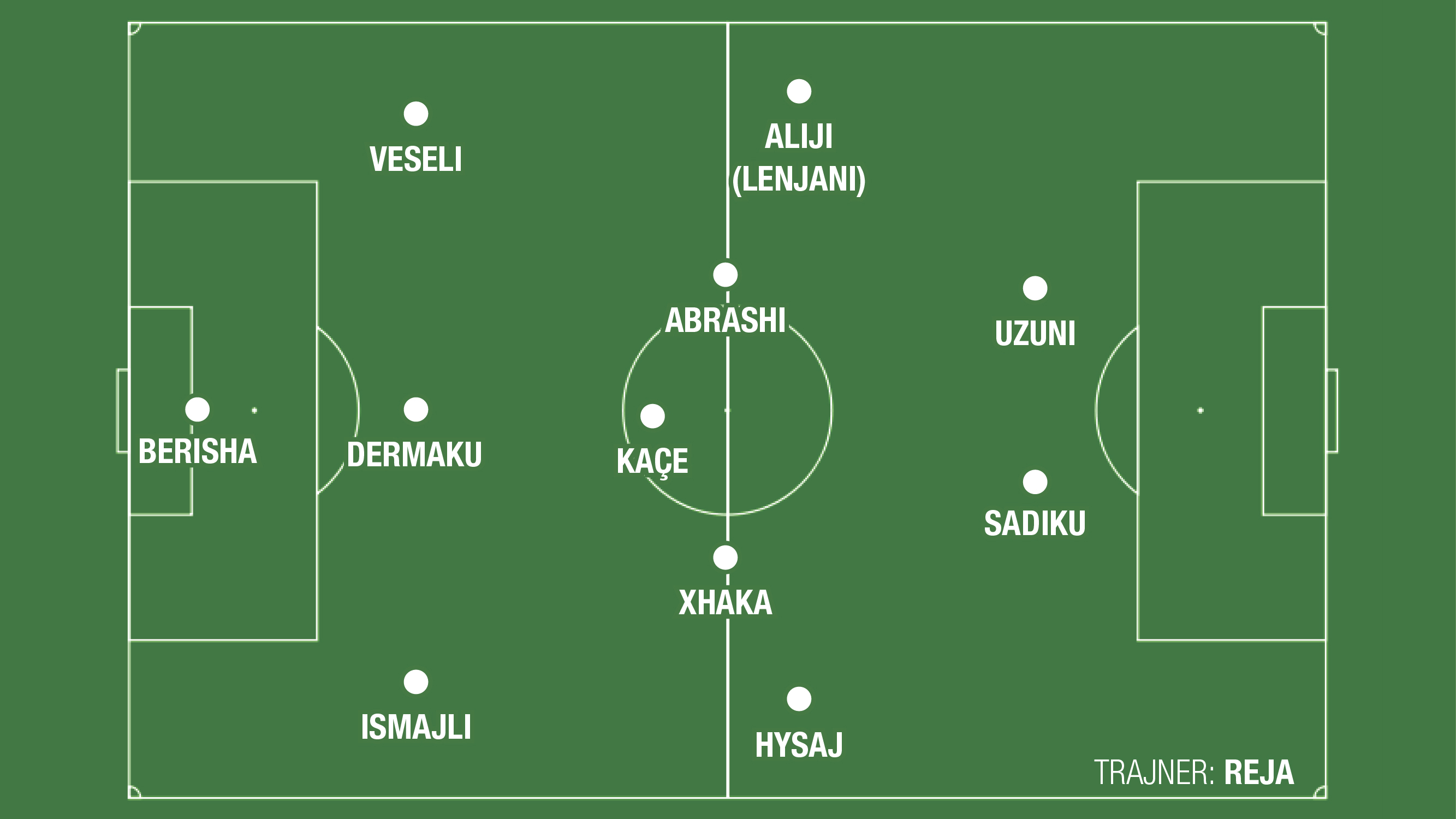 Sulmi, sipas të gjitha gjasave, do të jetë i ri. Armando Sadiku e nisi nga stoli ndeshjen në Rekjavik, kurse sot do të ketë një fanellë titullari, sepse, siç pohoi trajneri Reja, ai ka më shumë konfidencë me golin. Sulmuesi tjetër mund të jetë Uzuni, i cili gëzon një formë të mirë fizike. Me sa duket, trajneri italian ka menduar të ulë centimetrat dhe të luajë me lojtarë më të shpejtë, që skuadra të ketë më shumë befasi dhe ta godasë më shpesh portën kundërshtare.