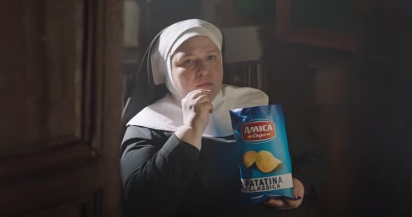 Reklama për Amica Chips, e cila është e njohur në Itali, zhvillohet në një manastir dhe fillon me murgeshat që përgatiten për të marrë kungimin.