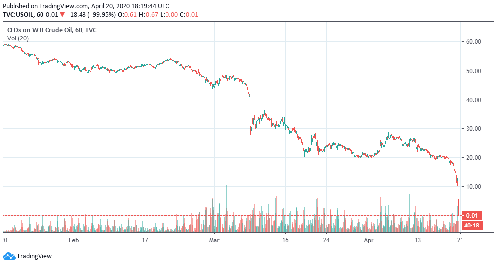 Që prej fillimit të vitit çmimet e naftës kanë rënë me më shumë se 80% (ose ndryshe me 50 $) e kjo prej goditjes që kërkesa ka pësuar nga koronavirusi dhe mos arritjes së dakortësimit në fillim midis Rusisë dhe Arabisë Saudite për të ulur ofertën e naftës. Pa një parashikim se kur mund që të ndalohet koroanvirusi dhe me prodhuesit që vazhdojnë e prodhojnë naftë duke se një reaksion zinxhir i shitjes masive ka nisur tek tregtarët e kontratave më afat të naftës të cilët nuk kanë akses në magazinimin e fuçive të naftës.