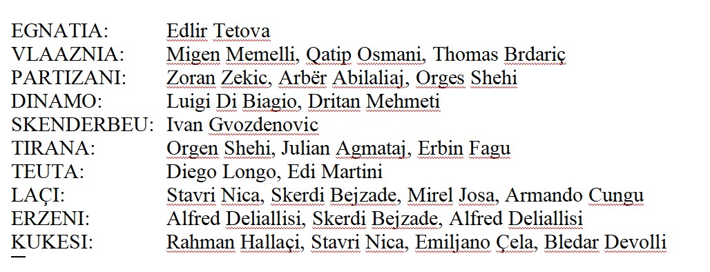 Pas tyre me nga tre trajnerë vijnë skuadrat më me traditë të futbollit tonë si Tirana, Partizani dhe Vllaznia, ndërkohë që Teuta e mbyll këtë kampionat, me shpresa dhe shanset për të qenë në katërshen me dy trajnerë, Diego Longon në fillim dhe më pas Edi Martinin që po e mbyll kampionatin.