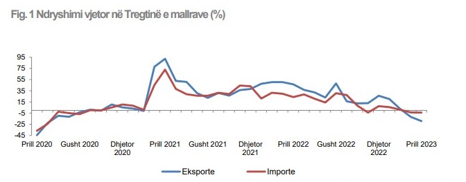 “Gjithashtu, rënia e çmimeve në tregjet botërore të produkteve, që kanë impakt në volumin tregtar, ka ndikuar në treguesit e eksport/importit për muajin prill 2023 krahasuar me vitin e shkuar”, thekson INSTAT në njoftim.