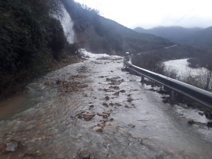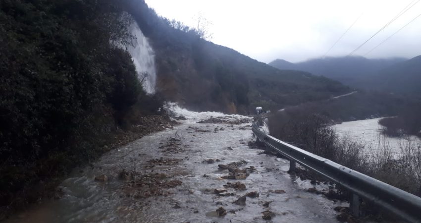 Pas reshjeve të rëna gjatë natës, aktualisht në këtë segment rrugor, qarkullimi është i pamundur për shkak të rrëshqitjeve të gurëve dhe të dherave.