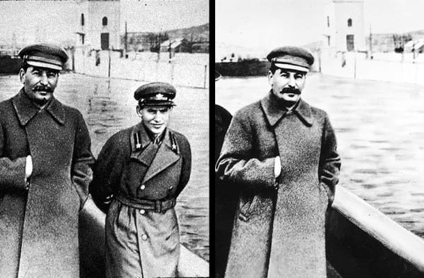 Stalini ishte gjithashtu një adhurues i manipullimit të fotografive. Ai e shtoi veten në një foto për të treguar se po vizitonte Leninin në shtëpinë e tij në vitin 1922, pak para vdekjes së tij. Dhe Stalini gjithashtu fshiu Shefin e Policisë së Sekretit, Nikolai Yezhov, pasi ai e kishte tradhtuar.