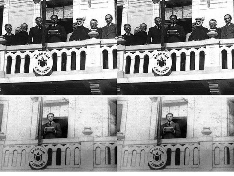 Megjithatë, komunistët e vjetër Rusë ndoshta ishin më të njohurit për manipulimin e imazheve dhe ndryshimit të historisë . Leon Trotsky është fshirë nga një fotografi e Vladmir Leninit i cili shihet të drejtojë një turmë , pas denoncimit të tij nga lideri i Bashkimit Sovjetik për mbështetje ndaj opozitës.