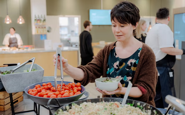 Ky nuk është një restorant i ri nordik, është një mensë pune. Këta kuzhinierë ushqejnë 900 punëtorë nga DSB (Hekurudhat Shtetërore Daneze) çdo ditë jave. Përveç pamjes dhe shijes së shkëlqyeshme, çdo pjatë e servirur këtu përmban drithëra integrale, nga smoothie-t e mëngjesit me tërshërë deri te ëmbëlsirat e pasdites me miell integral. Ka një arsye për këtë: DSB së fundmi u bë pjesë e një programi kombëtar që synon të sjellë më shumë drithëra integrale tek punonjësit.
