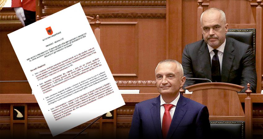 Kuvendi i Shqipërisë duke u njohur me aktin e Presidentit datë 10.06.2019 për shfuqizimin e dekretit nr. 10928, datë 05.11.2018 “Për caktimin e datës së zgjedhjeve për organet e qeverisjes vendore” dhe duke konsideruar se ky është një akt i paprecedentë që synon të mohojë realizimin e së drejtës kushtetuese të shtetasve shqiptarë për të zgjedhur përfaqësuesit e tyre në pushtetin vendor konstaton: