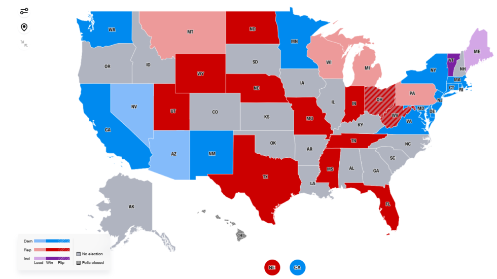 Vendi i pikës së kthesës është Nebraska, ku Fox News projekton që senatori aktual republikan Deb Fischer do të mundë sfiduesin e pavarur Dan Osborn.