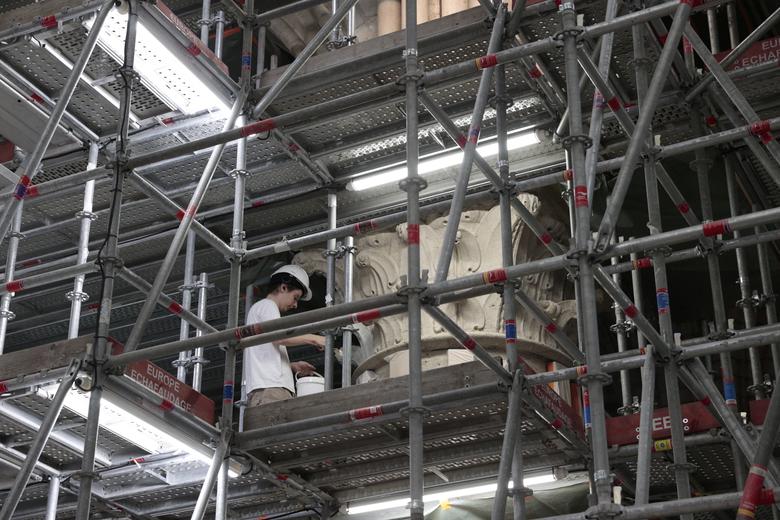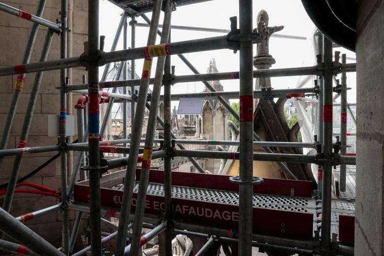 Katedralja Notre-Dame në Paris po vijon punimet t’u rihapur në vitin 2024. Tre vjet më parë çatia e katedrales u shkatërrua nga një zjarr masiv./Reuters/