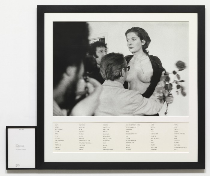 Publiku mund të përdorte cilindo nga shtatëdhjetë e dy objektet që Marina vendosi në tavolinë.