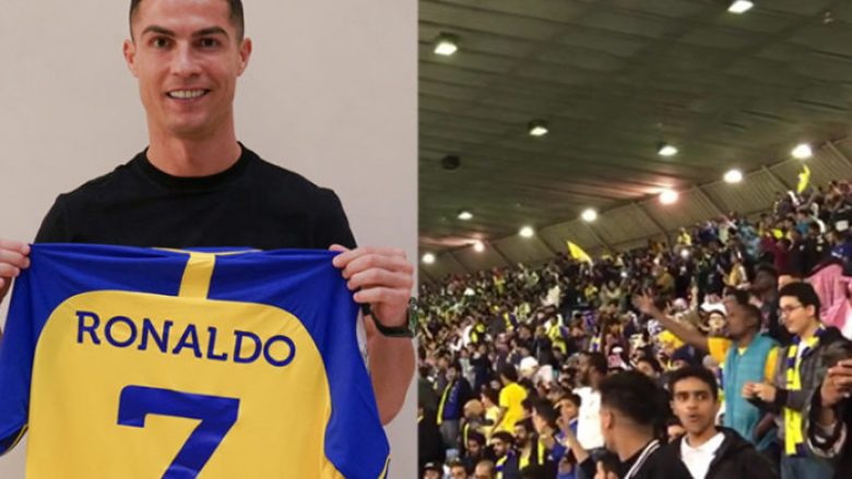 Tifozët e elektrizuar të Al Nassr brohoritën emrin e Cristiano Ronaldos dhe performuan stilin e tij të festimit pas golit, të quajtur si ‘Siiiu’, në tribuna ndërsa prisnin me padurim mbërritjen e yllit portugez në Arabinë Saudite.