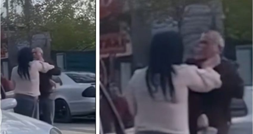 Nuk ka mjaftuar kjo por drejtuesja e mjetit ka zbritur nga makina dhe siç duket në videon e publikuar në rrjetet sociale e shtyn kalimtarin dhe i vë duart në fyt.